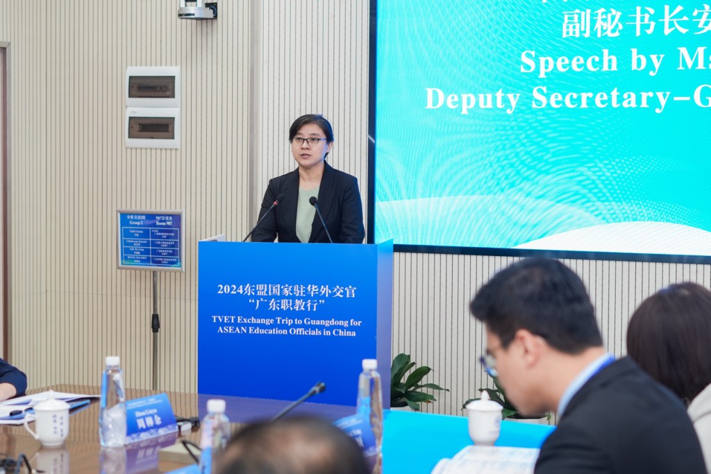 中国—东盟中心秘书长史忠俊大使在致辞中指出,中国与东盟友好关系源远流长。职业教育是中国东盟教育合作的重要内容,对促进就业创业、助力经济社会发展、增进人民福祉具有重要意义。中国和东盟各国都非常重视现代职业教育体系建设,加大高素质技术技能人才培养力度,合作前景广阔。继2024年之后,2025年再次被确定为“中国—东盟人文交流年”。 中国—东盟中心将持续推进教育等各领域合作,以多项活动丰富中国—东盟全面战略伙伴关系内涵,助力中国—东盟命运共同体建设及发展。