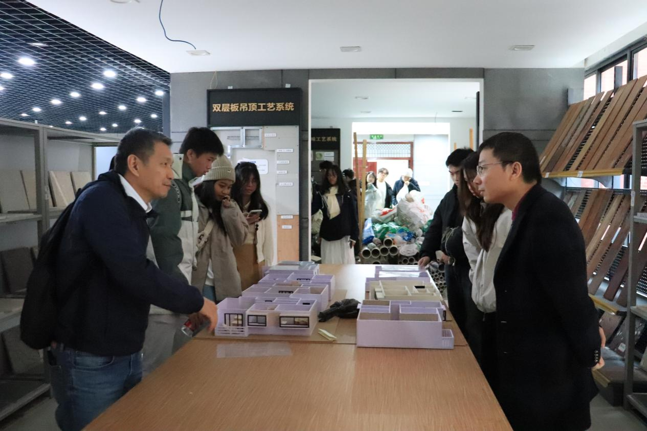 研学团一行参观考察了重庆工商职业学院城市建设工程学院和传媒与设计学院实训中心、学生工作坊以及教师工作室,深入了解了x 校的硬件设施和教学环境。随后,他们欣赏了学生们的优秀设计作品,并对他们的创新思维和实践能力表示赞赏。此外,研学团还体验了数字孪生建筑交互设计的技能实训,并参与了一堂沉浸式花艺特色课堂。这些活动不仅使他们亲身感受到我校的教学氛围和学术水平,也加深了对相关领域的理解和认识。