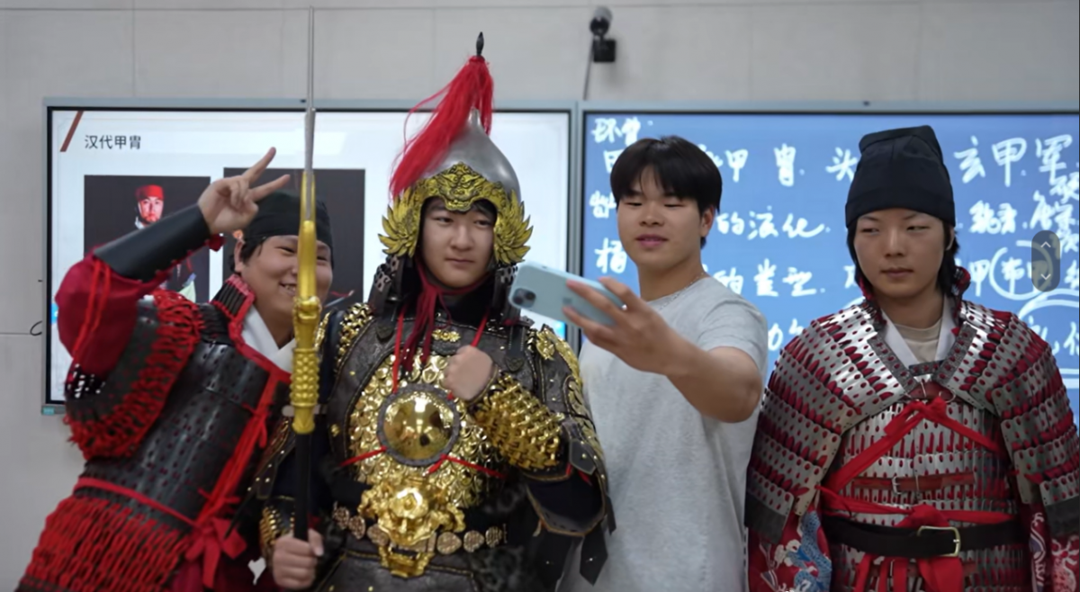 当00后大学生身着30斤重的宋代步人甲,在专业教师指导下体验古代行军礼仪时,时空仿佛在浙江农业商贸职业学院的教室里折叠……