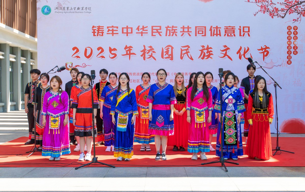 五月的校园,石榴花开正艳。5月14日下午,浙江农业商贸职业学院2025年校园民族文化节盛大开幕。学校各族师生代表、马山街道两江社区代表齐聚一堂,以“文化交融”为纽带,共同奏响民族团结进步的时代乐章。