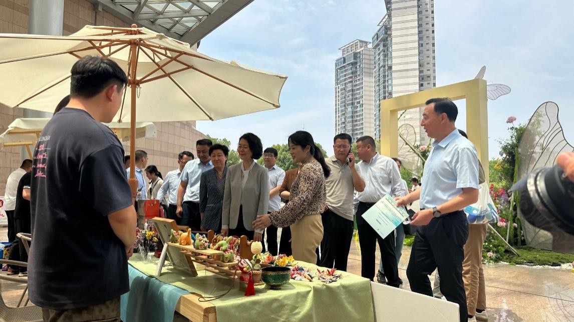 在市集现场,扬州市人民政府副市长刘流前往“艺匠承古”团队展区考察指导,校长林刚陪同参观。刘流副市长驻足欣赏扬州漆器、剪纸等非遗创新作品,对团队以现代设计重构传统工艺的探索给予高度肯定,称赞其作品“在传统肌理中植入时代语言,让千年非遗与当代生活同频共振”。校长林刚向市领导介绍,团队始终秉持“古技新诠”创作理念,通过“非遗元素解构-现代美学转译-实用场景适配”的创新路径,让非遗从博物馆展柜走向大众生活。市校领导共同表示,期待团队继续发挥高校智力优势,在守正创新中擦亮扬州“非遗之都”文化名片,为文旅融合发展注入更多青春动能。