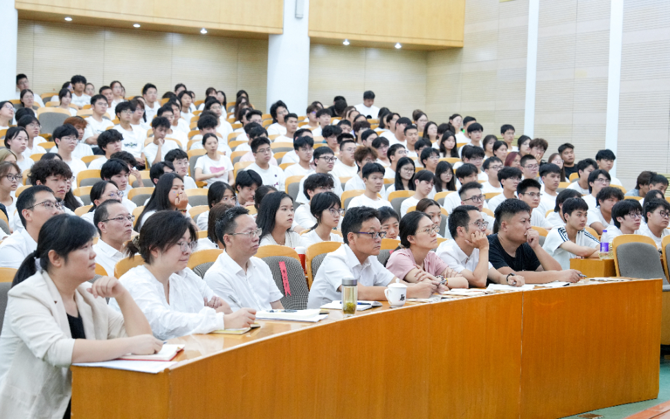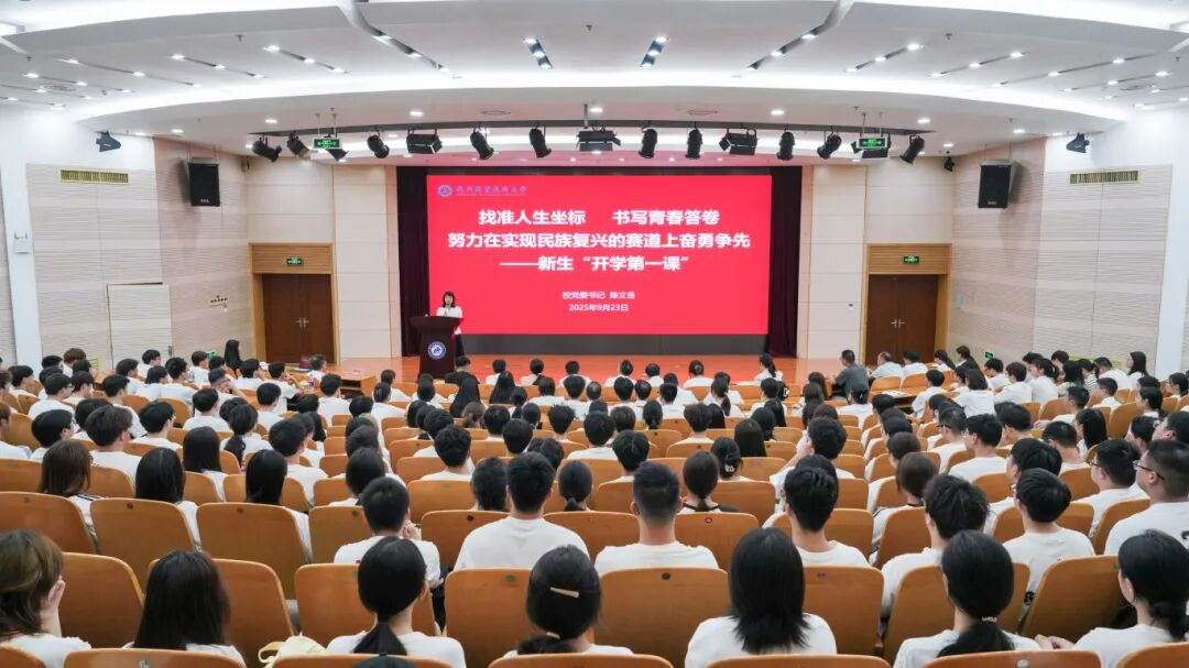 9月23日下午,校党委书记陈文岳以“找准人生坐标 书写青春答卷 努力在实现民族复兴的赛道上奋勇争先”为题,在行政楼二楼报告厅为2025级新生们讲授了“开学第一课”。
