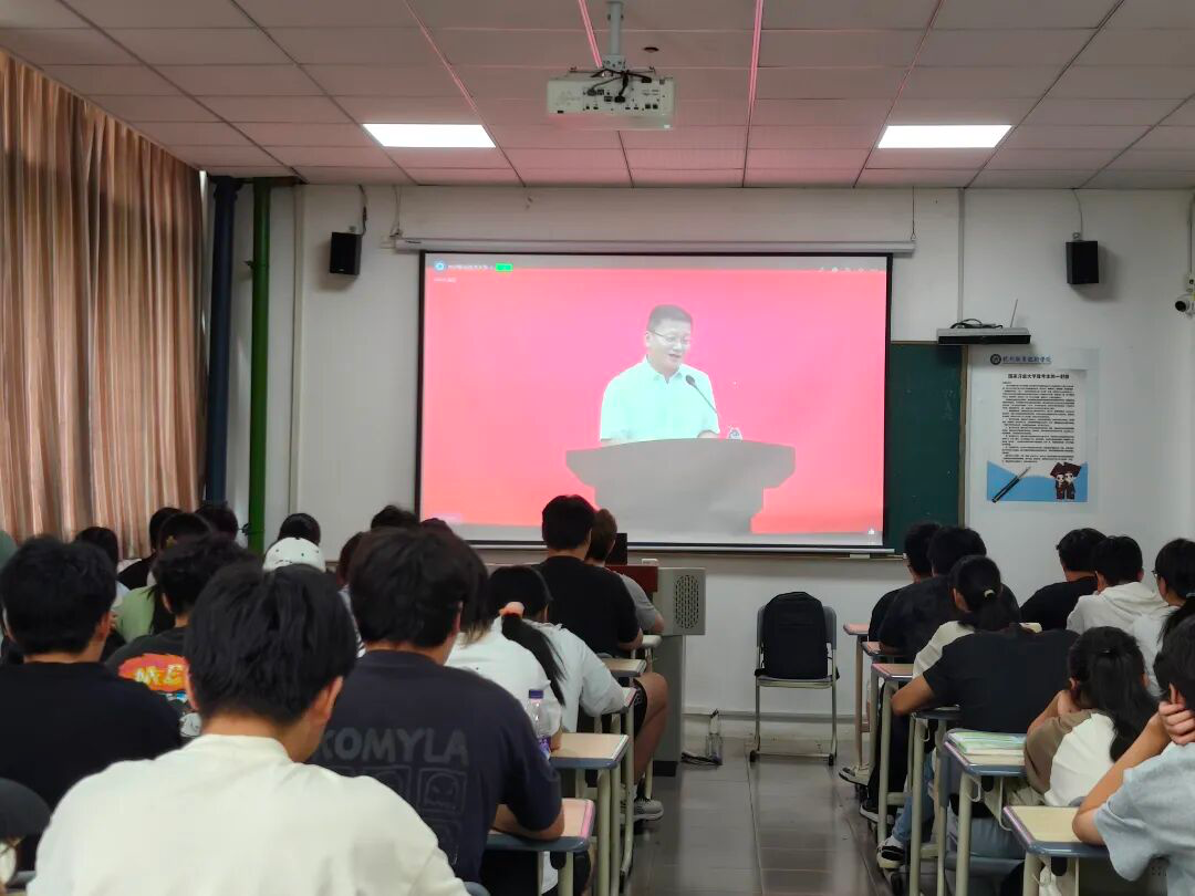 马克思主义学院党总支书记、院长邹宏秋教授主持“开学第一课”,相关职能部门、各二级学院分管学生工作的书记、学工办主任、新生辅导员、2025级全体新生参加,课程通过线上同步直播。
