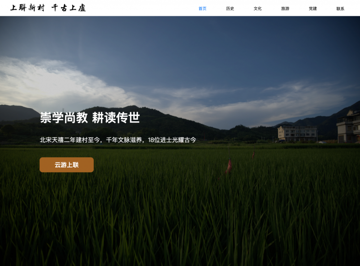 台州科技职业学院信息工程学院党总支与上联新村建立党建联建机制,围绕“共聚文化力量、共育信息人才、共助乡村振兴”目标,组建师生实践团队,以第八届浙江省大学生乡村振兴创意大赛为契机,运用数字技术活化古村文化资源。