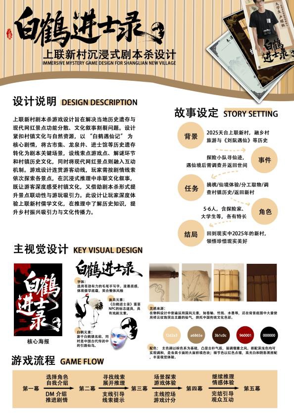 团队在调研中发现,上联新村最宝贵的财富是其丰富的历史文化资源,但缺乏现代化的表达方式。受当下年轻人喜爱的“沉浸式体验”启发,他们决定为古村量身打造一个大型实景探秘剧本游戏项目。在这个项目中,进士馆和古村核心古建筑成为剧本中的重要场景,历史传说转化为游戏中的精彩线索。游客通过手机小程序接收任务,沿着规划路线,在真实的古巷、老宅、祠堂中寻找线索,一步步解锁尘封的历史故事。