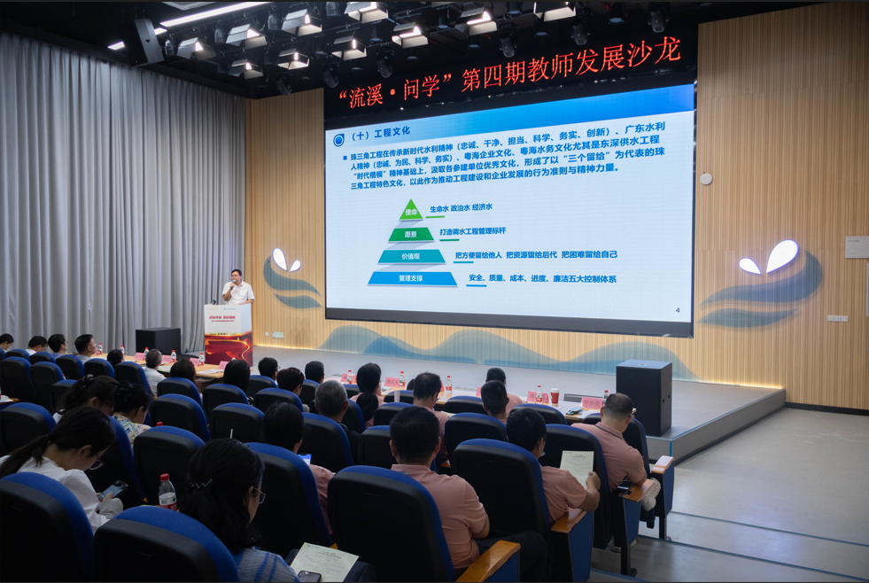 10月16日下午,为了更好地贯彻落实《教育强国建设规划纲要(2024-2035年)》精神,充分发挥思政引力,塑造立德树人新格局,培养担当民族复兴大任的时代新人。广东水利电力职业技术学院“流溪・问学” 第四期教师发展沙龙——“匠心传承,思政赋能——市政工程学院课程思政团队(广东省高职院校课程思政示范团队)建设成果展”在学生活动中心三楼313室成功举办。学校党委委员、宣传统战部部长、马克思主义学院党总支部书记陈甄、企业导师代表、兄弟高职院校同行教师、校内兄弟学院教师及市政工程学院、马克思主义学院全体教职工齐聚一堂,共同观摩和检阅市政工程学院课程思政示范团队的建设成效。活动现场气氛热烈,成果丰硕,充分展现了市政工程学院在深化“三全育人”、推进课程思政改革创新方面的积极探索与显著成效。