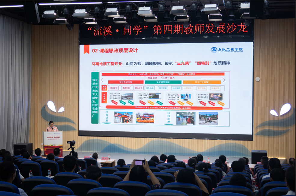 在随后的成果展示环节,内容丰富,形式多样,精彩纷呈。市政工程学院副院长周秋娟作为团队负责人,作题为“匠心传承,思政赋能”的建设成果主汇报,系统梳理了团队在体制机制建设、教学资源开发、教学方法创新、校企协同育人等方面取得的系列成果。来自广东粤海珠三角供水有限公司的企业导师单小亮作“不负山海 水润湾区”的主题演讲,结合珠三角水资源配置工程项目从国家重大工程的文化理念角度,深刻阐释了新时代水利人的家国情怀与责任使命,为课程思政提供了鲜活的行业视角。