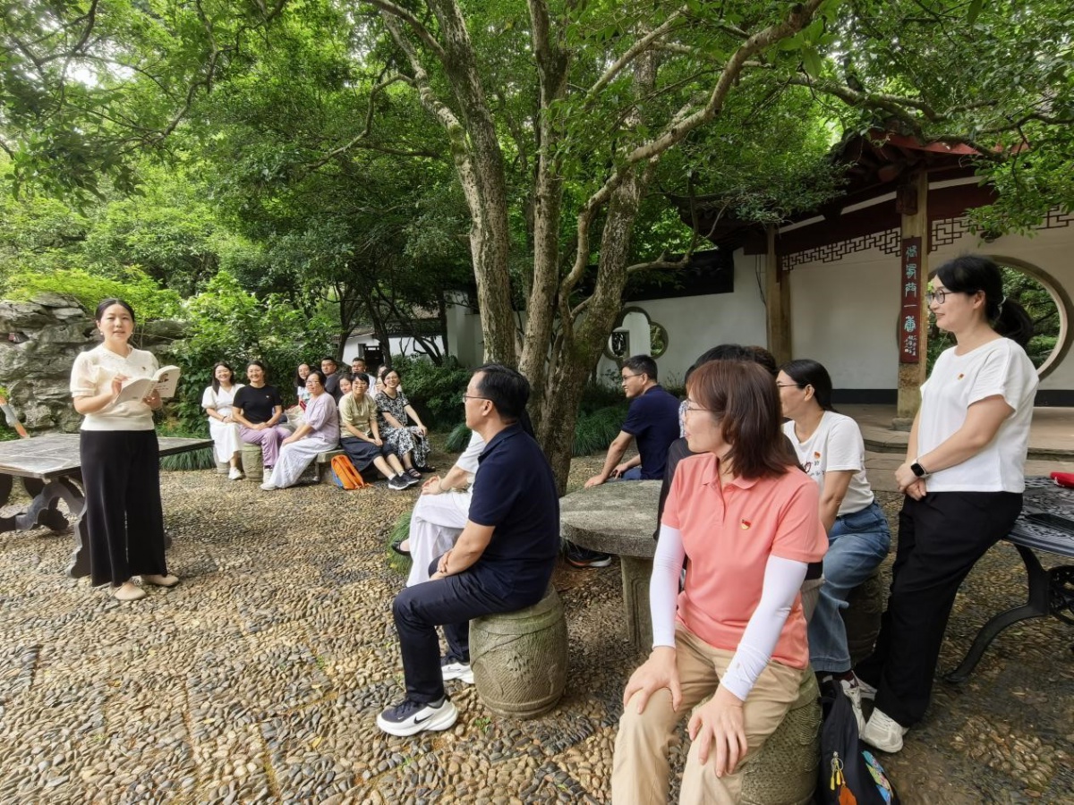 桂花树下的集体研学环节,教师代表围绕《习近平谈治国理政》第五卷,以 “全面推进美丽中国建设” 为主题分享实践案例。学院党总支书记张妮佳指出,从胡公 “以民为本” 的廉政实践,到新时代 “绿水青山就是金山银山” 的生态文明理念,从北宋先贤 “为民减负” 到中国共产党 “以人民为中心” 的执政理念,一脉相承的是 “人民至上” 的初心,这正是对 “两个结合” 意义的生动诠释。