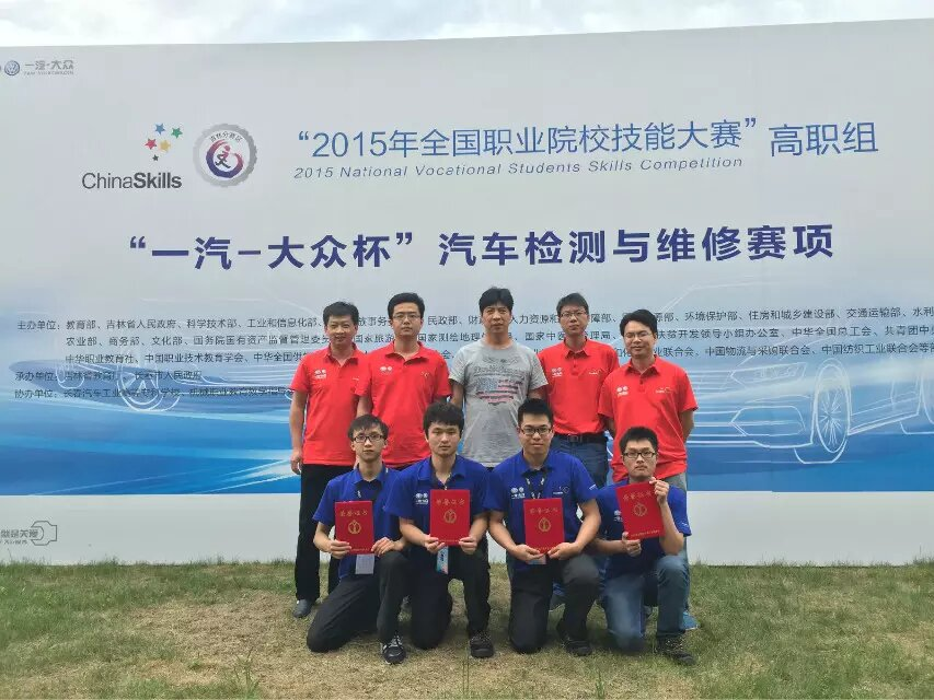 图2 2015全国职业院校技能大赛汽车检测与维修赛项,前排左一为刘青凡