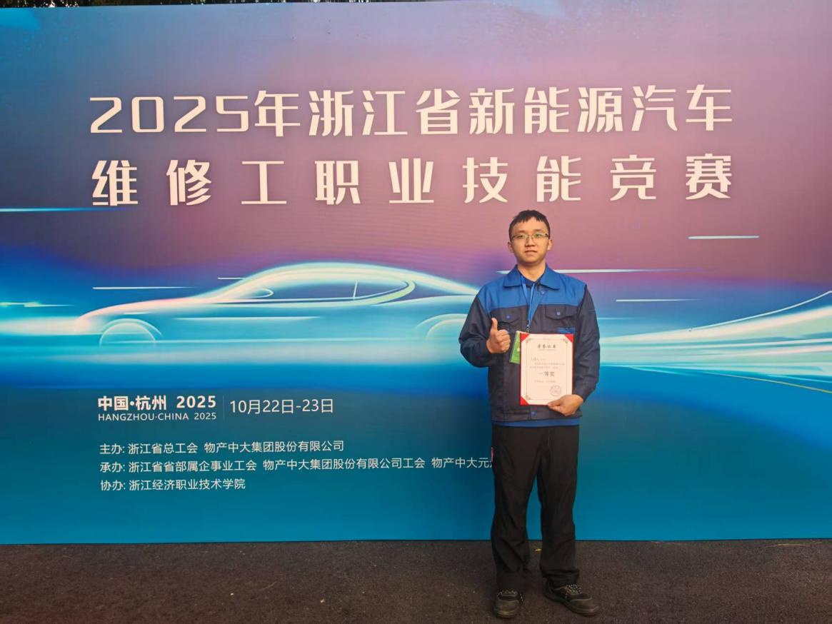图1 刘青凡在2025年浙江省新能源汽车维修工职业技能竞赛荣获第一名