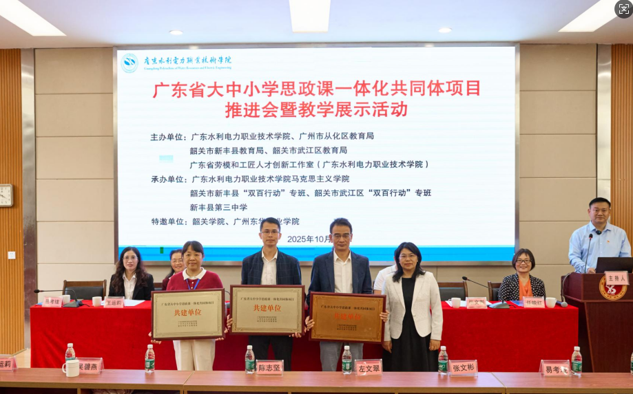 为深入贯彻落实《教育强国建设规划纲要(2024-2035年)》及新时代学校思政课建设推进会关于大中小学思政课建设的相关要求,10月30日至31日,广东省大中小学思政课一体化共同体项目推进会暨教学展示活动在韶关市新丰县成功举办。推进会由学校作为牵头高校联合广州市从化区教育局、韶关市新丰县教育局、韶关市武江区教育局、广东省劳模和工匠人才创新工作室(广东水利电力职业技术学院)共同主办,近100余位来自广州、韶关两地的教育主管部门领导、思政教育专家及一线教师参会,旨在以共同体建设为抓手,深化区域教育合作,提升思政课育人质效,为广东思政教育高质量发展注入新动能。