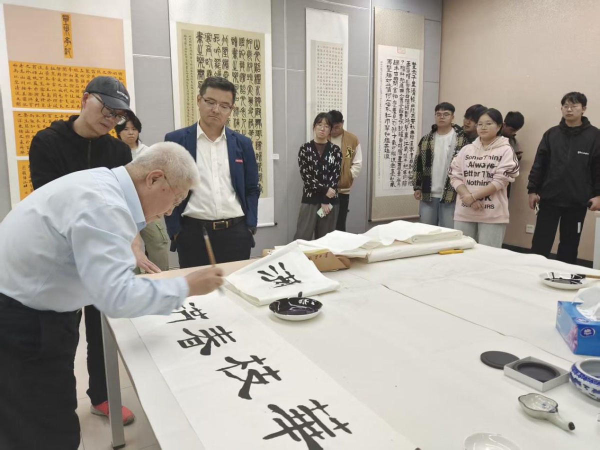 首遍落笔后,王院士觉“华”字隶书规范有欠,当即在工作人员协助下查阅书法字典校准;第二遍已成佳作,围观师生纷纷称赞,他却仍对“春”字细节不满,坚持重写;第三遍凝神聚力、笔酣墨饱,终成满意之作,赢得全场热烈掌声。
