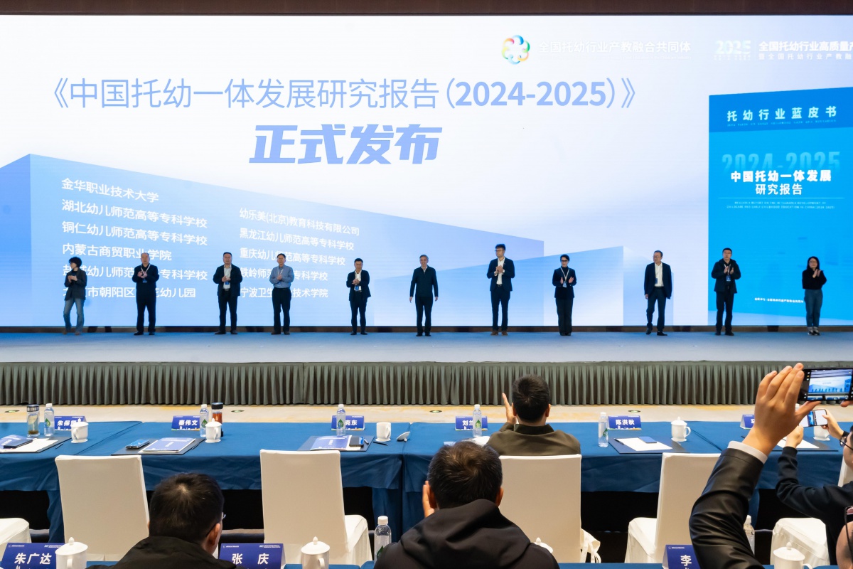 本次会议由教育部职业院校教学(教育)指导委员会指导,全国托幼行业产教融合共同体主办,幼乐美(北京)教育科技有限公司、金华职业技术大学承办。会议期间,有关专家进行了主旨报告,现场为托幼行业产教融合共同体(新增)副理事长单位授牌,并发布了《中国托幼一体发展研究报告2024-2025》蓝皮书。