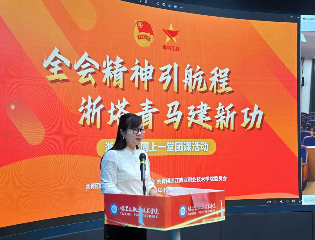 11月12日,塔里木职业技术学院与浙江商业职业技术学院通过云端相聚,共同参加了一场别开生面的“全会精神引航程,浙塔青马建新功——浙塔青年同上一堂团课”活动。两校“青马工程”培训班学员、师生代表共300余人在线上线下同步参会。本次活动是塔职院和浙商院首次以结对共建形式联合开展“青马工程”培训。
