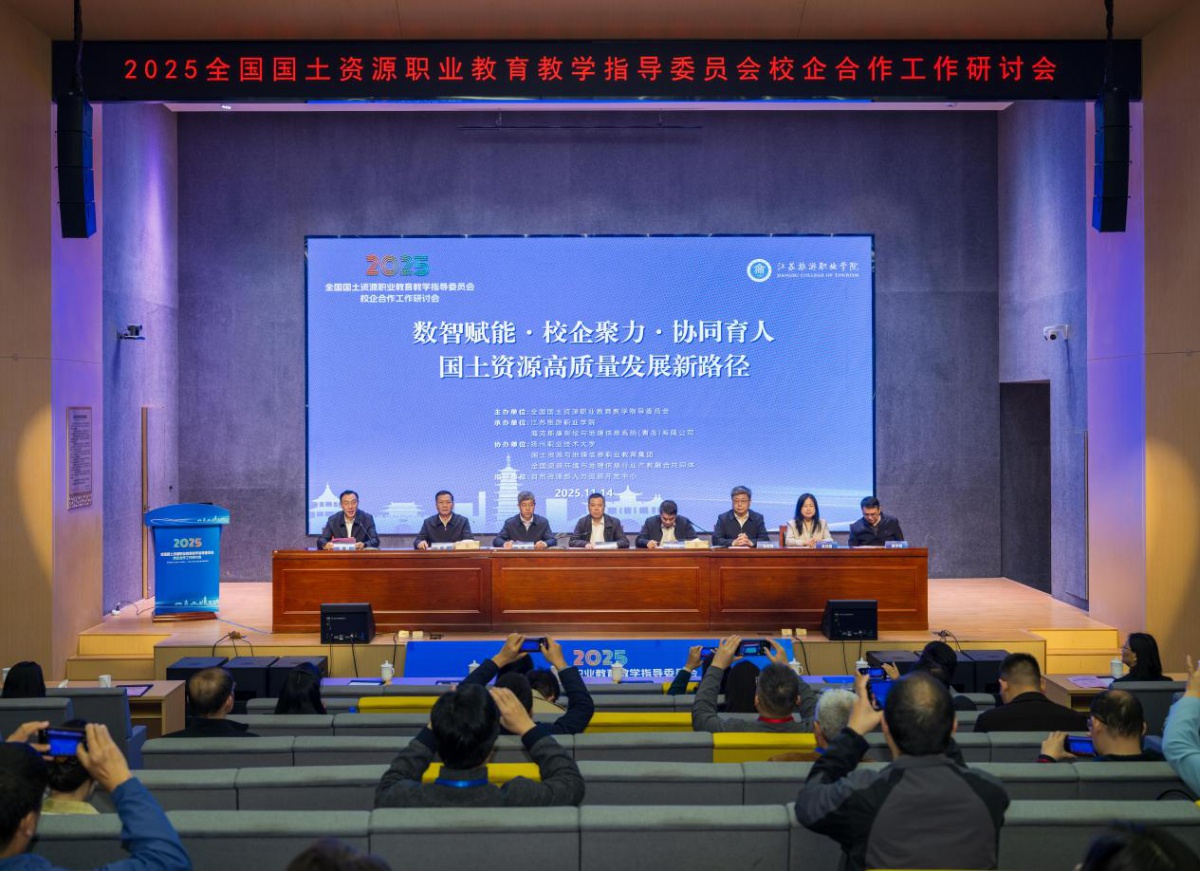 11月14日,全国国土资源职业教育教学指导委员会校企合作工作研讨会在江苏旅游职业学院召开。本次会议以“数智赋能・校企聚力・协同育人——国土资源高质量发展新路径”为主题,来自全国各地的职业院校领导、行业专家、企业代表齐聚运河之畔的扬州,共商国土资源职业教育产教融合新路径,共绘协同育人新篇章。自然资源部人力资源开发中心副主任吴卫东、江苏旅游职业学院党委书记田浩出席开幕式并致辞,国土资源职业教育教学指导委员会校企合作工作专委会主任、常州纺织服装职业技术学院党委书记林刚主持开幕式。