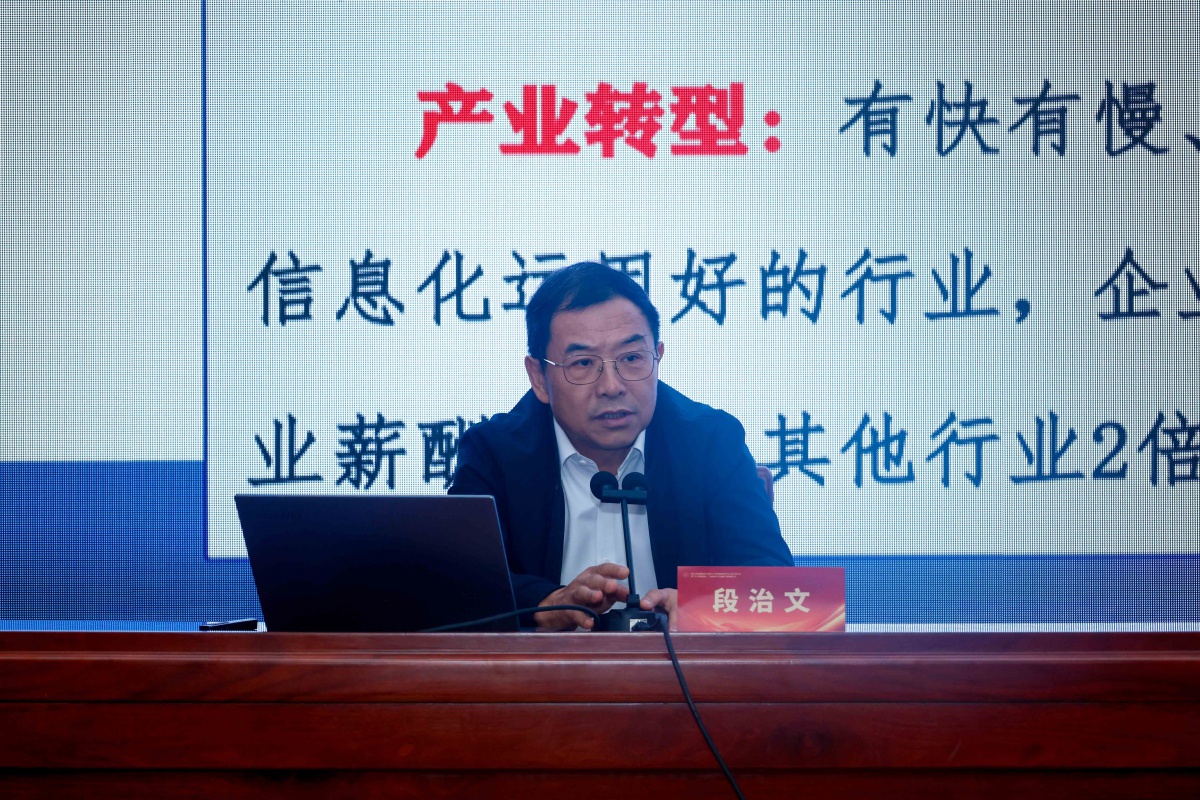 浙江大学求是特聘教授、马克思主义学院博士生导师、中共党史党建研究所所长段治文教授作题为《党的二十届四中全会精神学习与理论研究》的专题报告。他系统梳理了全会提出的“六大原则”“七大目标”“十二大战略任务”,并深入分析了“十五五”期间经济发展的五大趋势,以及社会发展和改革开放的重要导向,强调党的自我革命是推进中国式现代化的根本保证。