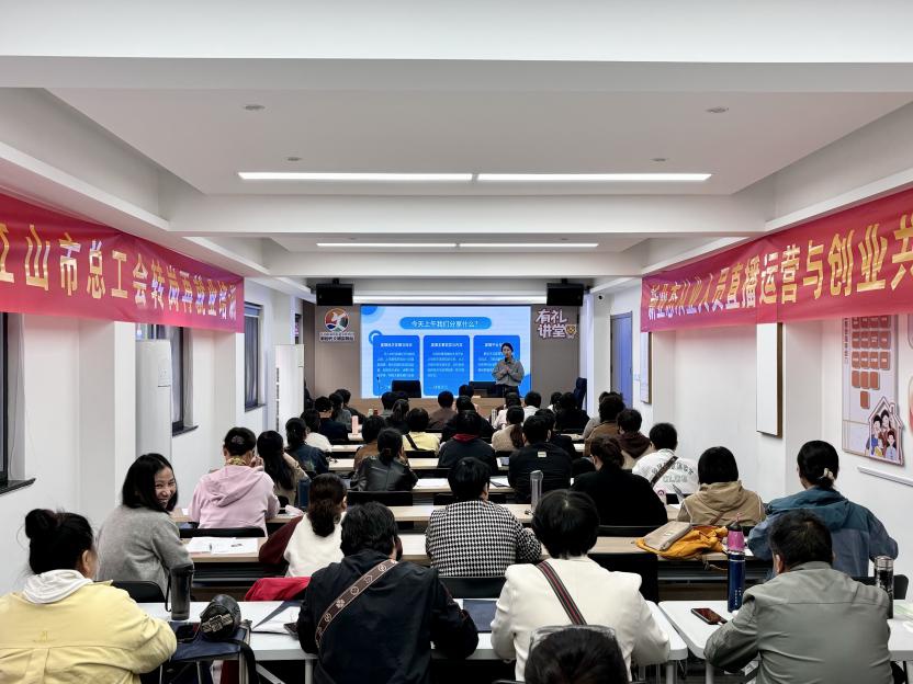 学院党员教师杨沛文充分发挥党员先锋模范作用,受邀为江山市总工会与民政局联合主办的“新业态从业人员直播运营与创业共富培训班”授课,通过系统讲解直播带货全流程、短视频运营等实用技能,帮助学员提升创业就业能力,获得广泛好评。