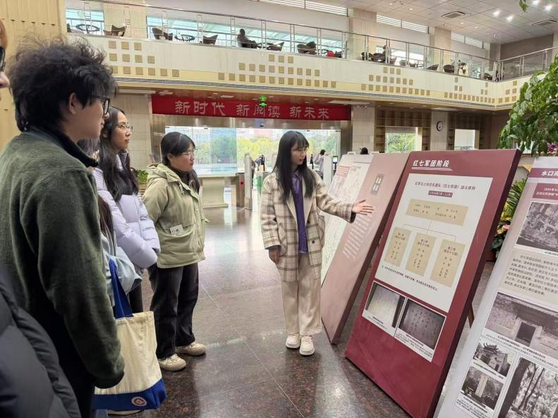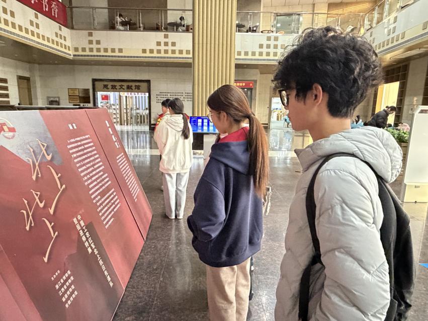 图书馆为此次活动提供了宽敞的展览场地,还利用自身丰富的藏书资源,为师生深入了解相关历史背景提供了便利。此外,展览现场的集章打卡处成为热门打卡地。师生们拿着特制的集章本,在各个展区寻找特定的打卡点,收集印章。这种互动活动不仅增加了观展的趣味性,还让大家更加深入地了解了展览内容。