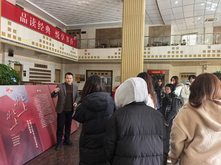 11月14日至26日,浙江金融职业学院图书馆一楼大厅人头攒动,一场跨越时空的红色盛宴——“北上!北上!——中国工农红军北上抗日先遣队暨挺进师特展”浙江金融职业学院站活动在此火热开展。本次展览由浙江省博物馆、江西省博物馆、福建博物院、安徽博物院联合主办,浙江金融职业学院马克思主义学院承办,浙江金融职业学院图书馆协办,旨在借助展览,让红色历史在校园中焕发生机,为师生带来沉浸式的思政教育体验。