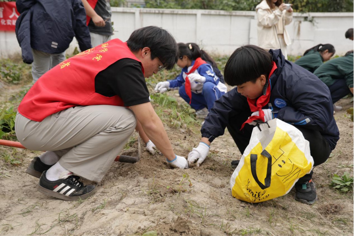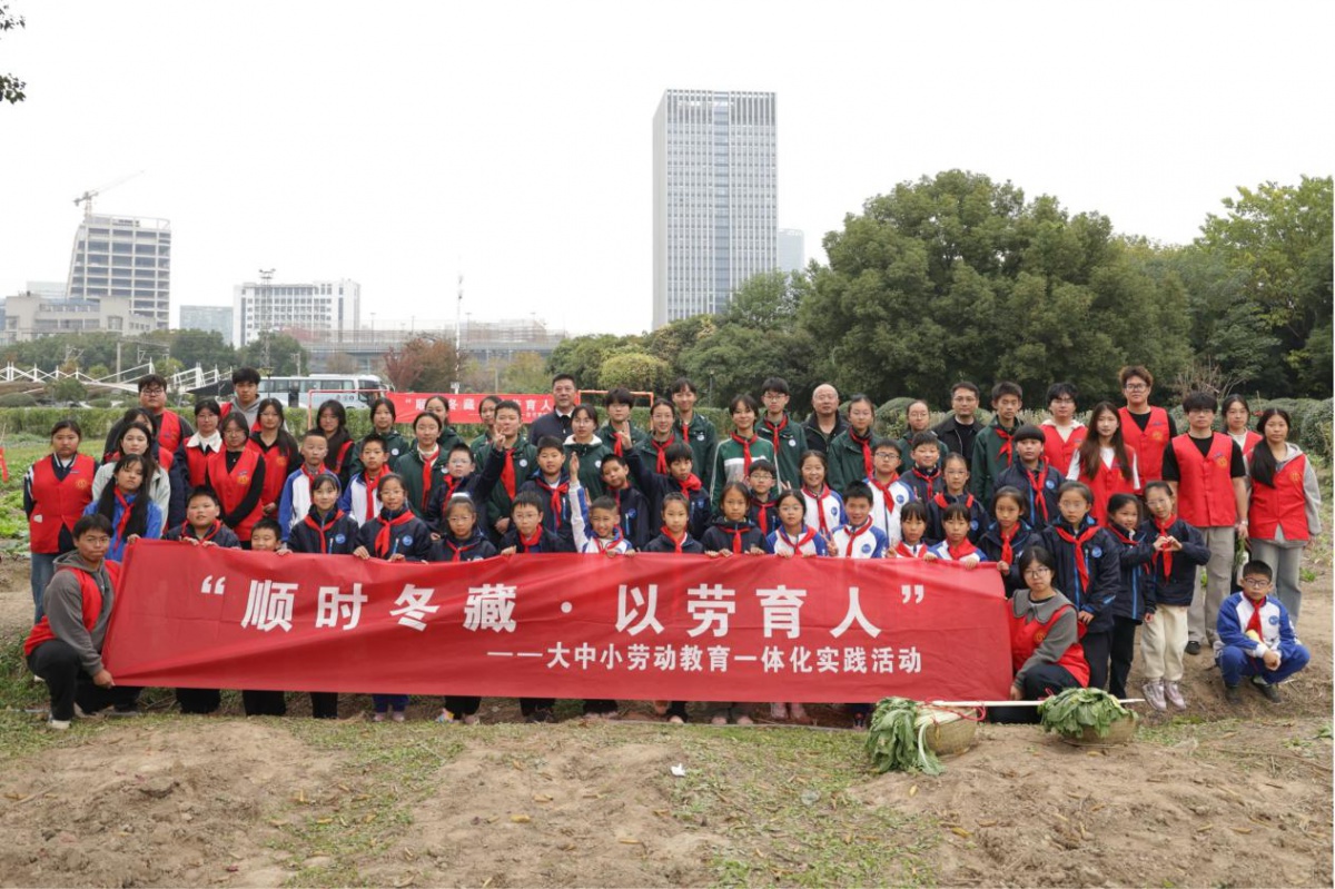 这是浙江商业职业技术学院“顺时冬藏·以劳育人”大中小劳动教育一体化实践活动的一幕。11月23日,学校将课堂搬到田间地头,让来自西湖紫萱小学、滨文中学的同学们和大学生朋友们,在挖红薯、学储藏的劳动实践中,感悟“春生夏长秋收冬藏”的农耕智慧,也体会劳动精神的时代价值。