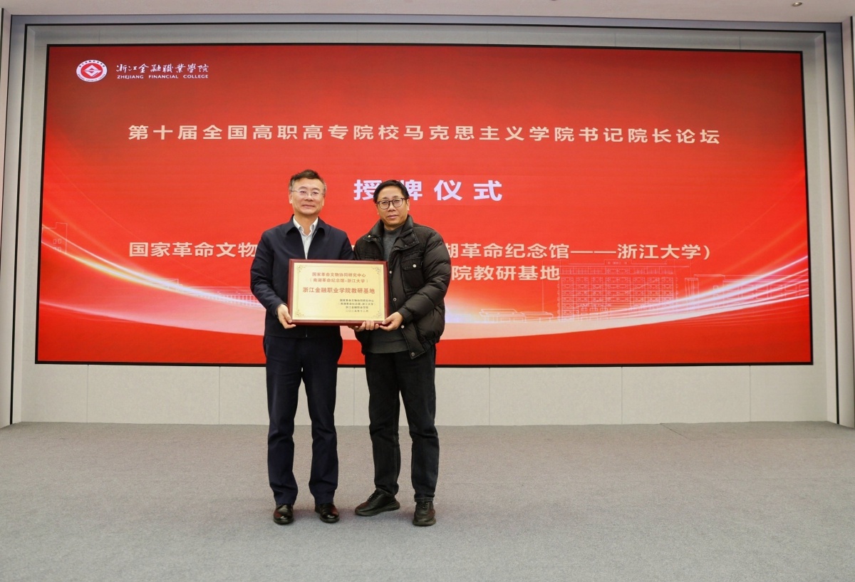 随后,论坛举行国家革命文物协同研究中心(南湖革命纪念馆—浙江大学)浙江金融职业学院教研基地授牌仪式。