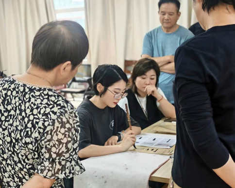 仁和街道“花好仁和 同心绘春”文艺汇演现场,中外学子齐聚非遗展示区。漆扇在指尖轻盈流转,剪刀在红纸上翩跹起舞,传统技艺与现代审美在此碰撞交融,这场跨越国界的文化对话,让中华文化的独特魅力在方寸之间绽放,架起一座文明互鉴的彩虹桥。盛夏的张堰村,“红韵绿踪”践梦团开展了一场别开生面的“三下乡”实践,首日推出的《树木密码》课程,将剪纸艺术与生态教育巧妙融合,指导孩子们用剪刀勾勒自然元素,同步开展资源循环利用与生物多样性保护科普,让环保理念如春风化雨般浸润童心。课堂里,剪纸作品展现童真视角,欢声笑语传递积极能量,实践团以青春之笔,绘就“党建红”与“生态绿”交相辉映的画卷。金秋时节,老年大学课堂焕发新彩,书法班墨香氤氲,学员们执笔挥毫间感悟千年文脉;声乐课堂歌声悠扬,银发族用音符奏响生命乐章;手机摄影课则教会老人们用镜头定格非遗瞬间。在这里,“老有所学”不仅是理念,更是看得见、摸得着的幸福图景。