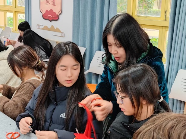 通过搭建校地合作平台,浙江交通职业技术学院正积极推进非遗传承人教学参与机制的建立,为传承人深度融入课程设计、实践指导等教学环节提供制度保障,逐步构建“学校主导、学生参与、传承人指导”的协同育人模式。10月22日,国家级非遗“伞制作技艺(西湖绸伞)”代表性传承人宋志明团队受邀入校,通过手把手教学带领学生完成选竹、劈骨、穿线等制伞全流程,让传统技艺在校园焕发新生。12月3日,余杭区非遗传承人陈富梅老师开设剪纸艺术体验课,通过“一剪一世界”的指尖创作,将剪纸艺术的千年文脉转化为可触可感的现代审美,这些活动不仅丰富了学生的校园生活,更让非遗技艺在青春心灵中生根发芽。通过打造非遗文化基地,青年学子在绸伞、剪纸等实践活动中亲身体验传统技艺的精髓,更化身传习宣推官,以创新思维赋予非遗现代活力。