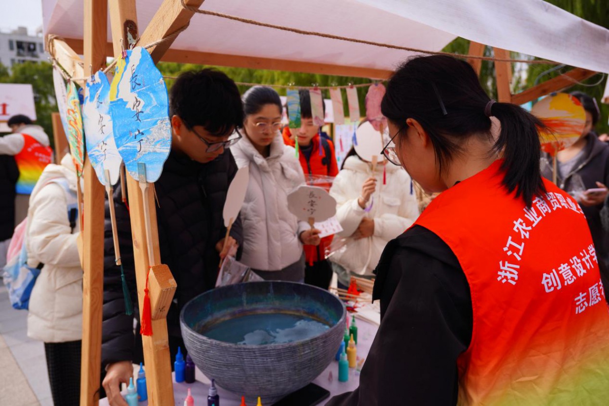在浙江农业商贸职业学院禾木桥上,思政教育正以意想不到的方式“活”起来。一场融合艺术、科技与社区服务的创意市集,把课堂延伸至户外,让价值观教育变得可触摸、可体验、可共鸣。在这里,3D打印还原历史场景,非遗手艺邂逅年轻创意,民警与师生面对面讲解反诈知识……这不仅是展览,更是一堂“行走的思政课”。