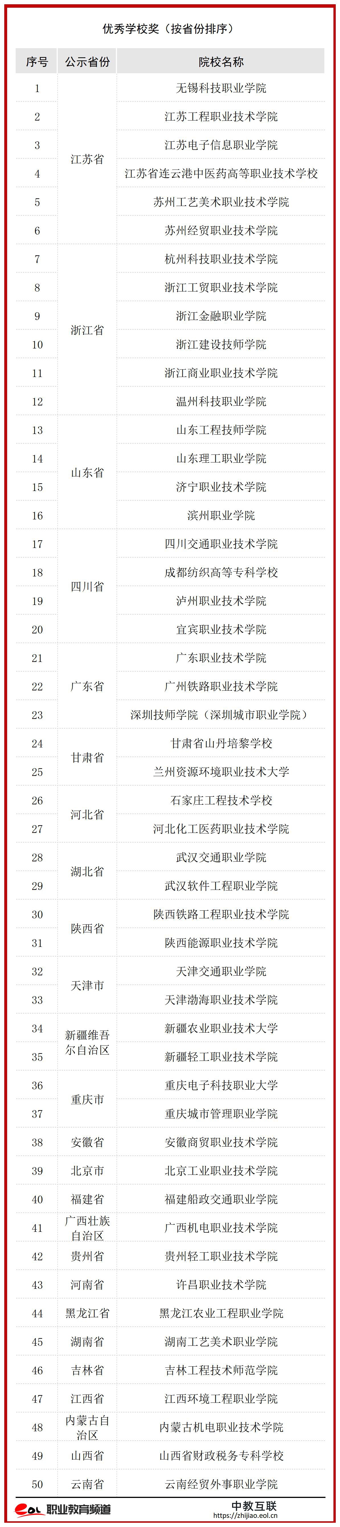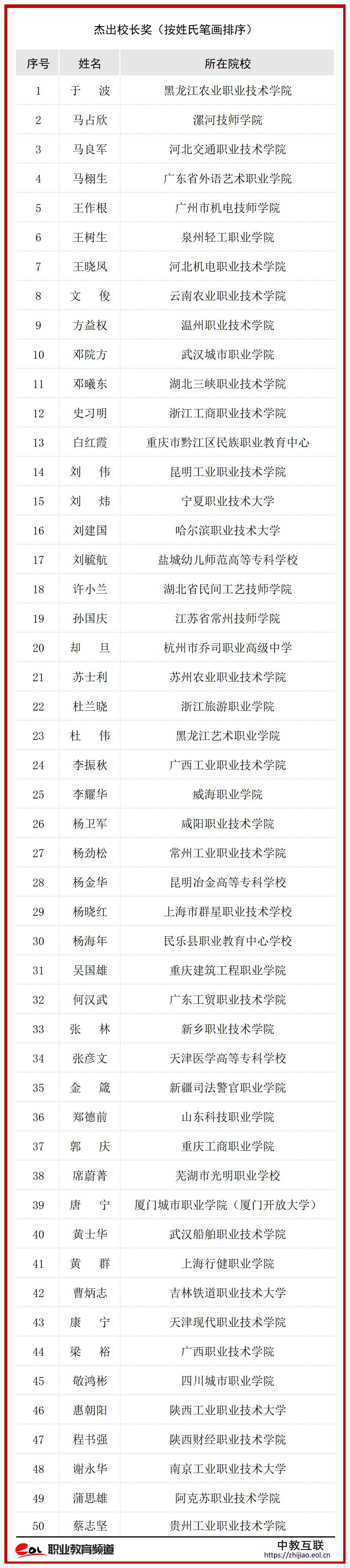 近日,中华职业教育社官网发布《第九届黄炎培职业教育奖获奖名单公示》。本届黄炎培职业教育奖共设立优秀学校奖50个,杰出校长奖50名,杰出教师奖100名。