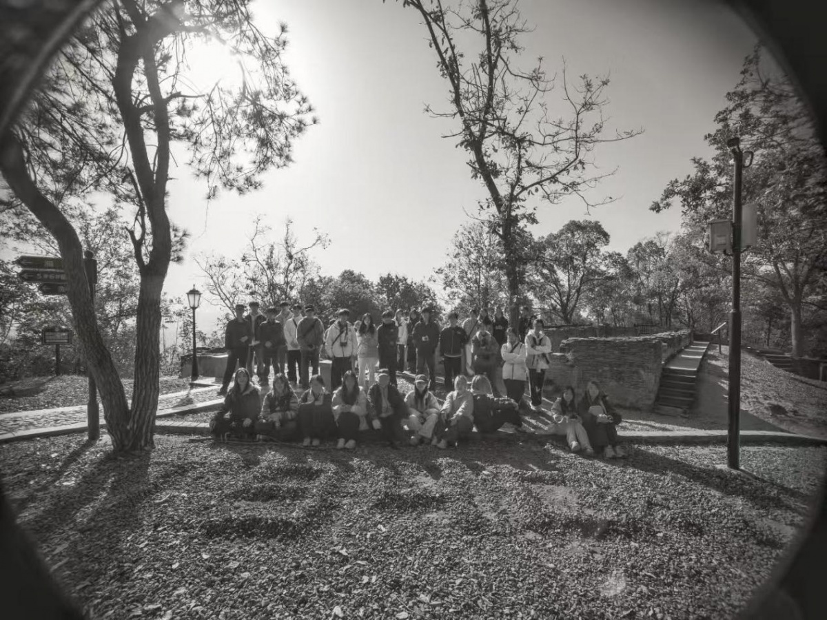 四次外拍实践中,大爿山抗战遗址公园的经历,至今仍是学生们口中最难忘的篇章。阳光穿透稀疏的枝叶,在斑驳的碉堡上投下深浅交错的光影。杭老师没有急于讲授构图、曝光等摄影技巧,而是站在遗址前,缓缓讲述起1940年发生在这里的抗战往事。随后,他带领同学们将白色纸巾在石子上摆出“1940”的字样,再用碎石轻轻掩埋。“这些白纸,就像当年那些二十出头的战士,青涩未褪,却为了祖国义无反顾地献出了生命。”杭鸣峙老师的话语,字字戳中人心。采风结束时,杭老师让大家把这些纸巾带到山下点燃,火光摇曳中,是对浴血奋战的先烈们最深切的缅怀。“以前总觉得摄影是‘记录美’,那天才真正懂得,它更能‘传递魂’。”这场外拍,让摄影技能在历史的浸润中完成了深刻进阶,更让红色基因借着光影的载体,悄然融入了年轻一代的血脉。