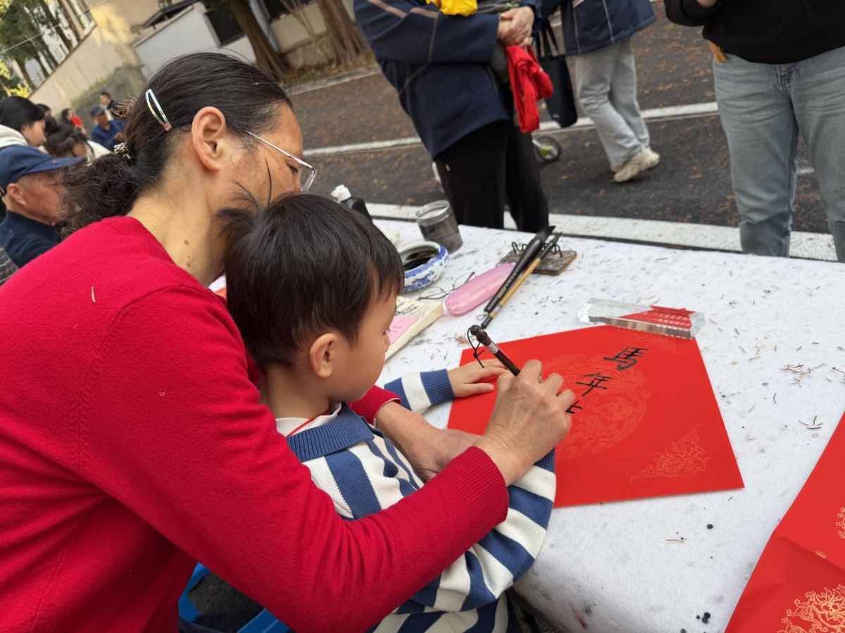 时值年末岁尾,年味渐浓。为传承中华优秀传统文化,丰富社区居民精神文化生活,近日,浙江长征职业技术学院建筑工程学院“小鲁班”志愿服务队携手留下街道茶市街社区老年书画队,在社区文化广场开展“承茶市古韵情,小鲁班暖冬行”传统文化体验活动。活动设置写福字对联、扇子书签拓印、纸衍手工等多个趣味项目,吸引了社区全年龄段居民踊跃参与,更迎来了辖区幼儿园小朋友的专场体验,现场暖意融融、笑语盈盈。