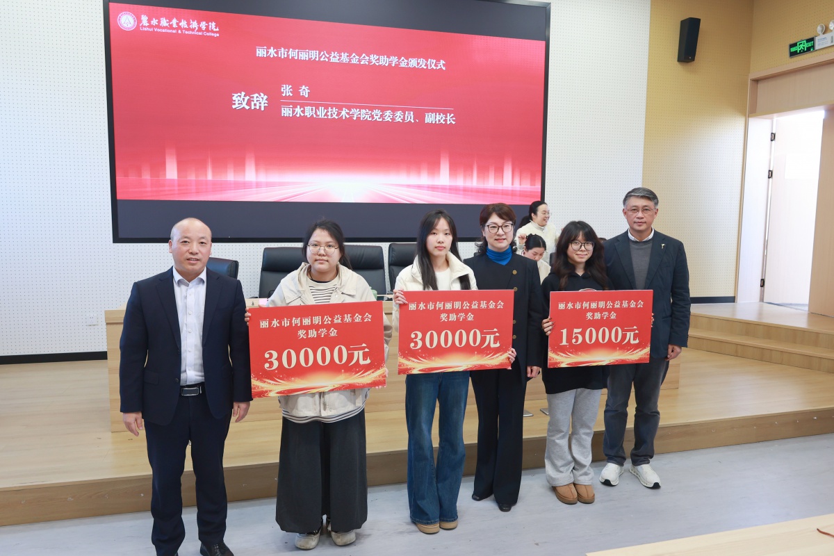 12月29日,丽水市何丽明公益基金会2025年度奖助学金颁发仪式在丽水职业技术学院举行。纳爱斯集团党委副书记、丽水市何丽明公益基金会秘书长赵丽萍,丽水职业技术学院党委委员、副校长张奇等嘉宾及相关部门负责人,师生代表150余人共聚一堂,见证15个职业技能竞赛奖学项目和22名学生受到奖励与资助,奖助金额达28.6万元。