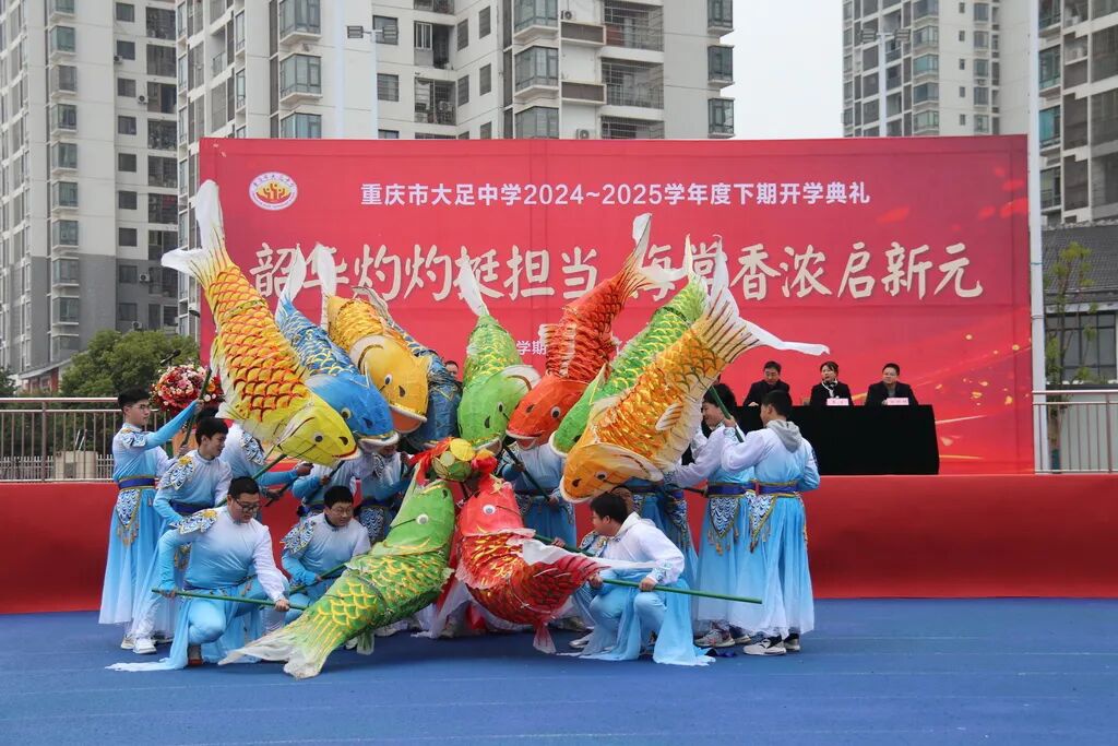 大足中学开学典礼上的鲤鱼灯舞