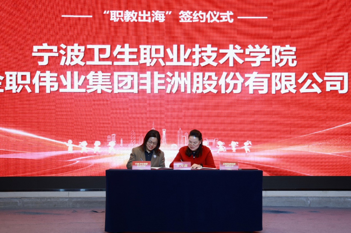 论坛现场,宁波卫生职业技术学院党委委员、副校长江玲丽与金职伟业集团非洲股份有限公司董事长彭英共同签署“职教出海”合作框架协议,双方将在专业与职业标准共建、数字化教学资源建设、教材与培训体系开发、“丝路学院”项目申报等领域开展深度合作,共同为非洲国家提供职业教育整体解决方案,培养符合当地经济发展需求的高素质技术技能人才,实现“中国标准”与“非洲需求”的有机融合。