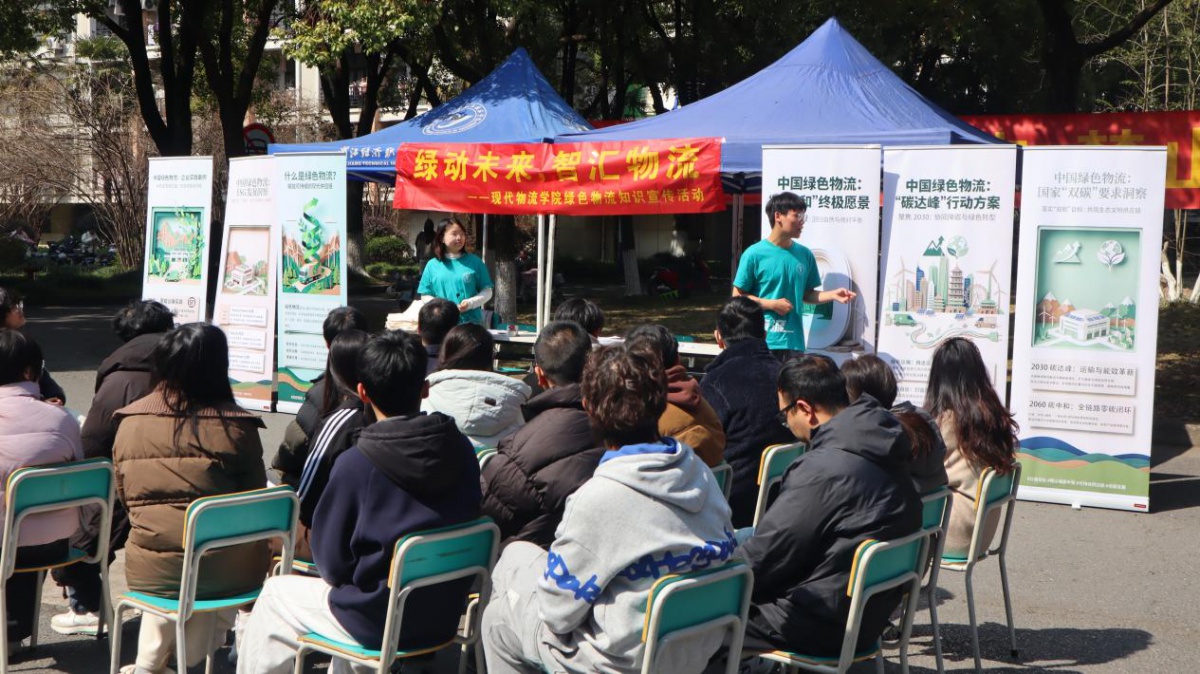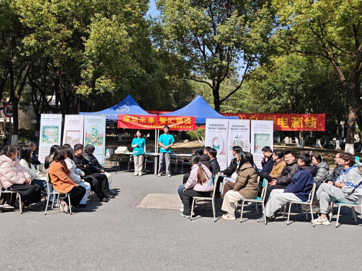 活动现场,学生宣讲环节成为一大亮点。学院供应链、物流工程等专业的学子主动担当宣讲员,立足专业知识与时代需求,围绕绿色物流核心内涵、ESG理念、“双碳”战略部署及碳达峰碳中和目标,开展生动易懂的科普宣讲。宣讲中,学子们摒弃枯燥的理论说教,创新采用生活化比喻拆解专业概念,将物流比作经济社会运转的“流动血液”,形象阐释绿色物流“少排废料、少耗能量、循环利用”的核心要义;同时结合行业案例与校园实际,用鲜活事例解读“双碳”战略的现实意义,把抽象的国家战略转化为可感可知的身边实践,既展现了青年学子的专业素养,也让宣讲更具吸引力和感染力,吸引大批师生驻足聆听、积极互动,有效推动“双碳”理念入脑入心、落地生根。