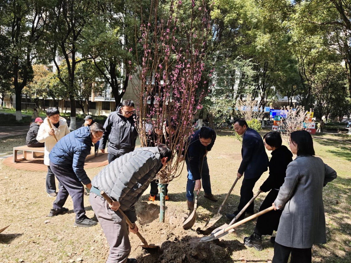 宣讲与互动结束后,校领导与学院党员师生共同奔赴植树现场,分工协作、挥锹铲土、扶苗浇水,以实际行动践行“双碳”使命。一株株新苗迎风挺立,既为校园增添生机,也凝聚着师生守护生态家园的坚定决心。