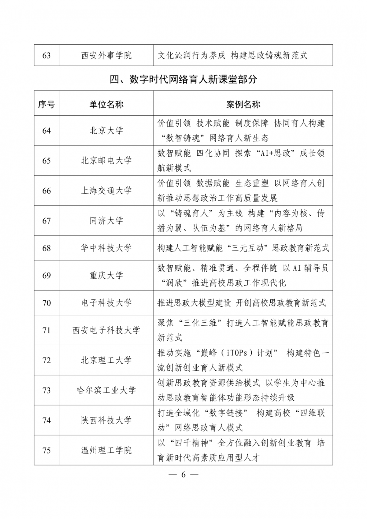 据教育在线统计,首批100个典型案例中,共有5所高职院校入选。其中,北京科技职业大学、温州职业技术学院、湖北三峡职业技术学院、青海职业技术大学入选“新时代伟大变革实践育人大课堂”典型案例,深圳职业技术大学入选“教师队伍和基层组织建设”典型案例。