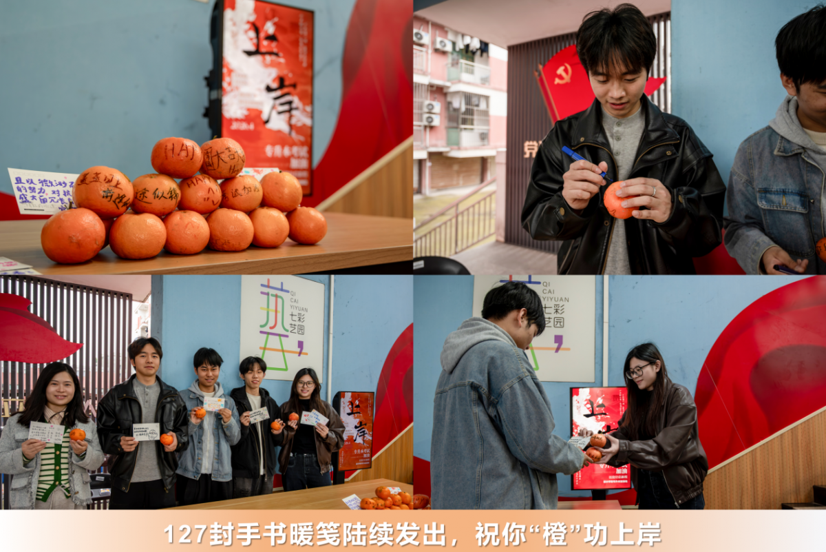 艺术232班的张同学表示,这段时间自己一直在“七彩艺园”的专升本专属自习室备考,冲刺阶段压力陡增,偶尔会陷入焦虑和自我怀疑,这次收到学院送来的手写贺卡和定制橙子,心里满是暖意。“每一张贺卡都是老师和学弟学妹亲手写的,每一颗橙子上的寄语也都独一无二,这份看得见、摸得着的关怀,瞬间消解了我大半的备考疲惫,也让我有了更足的底气和信心奔赴考场,我一定会全力以赴,不负学院的期许与陪伴。”
