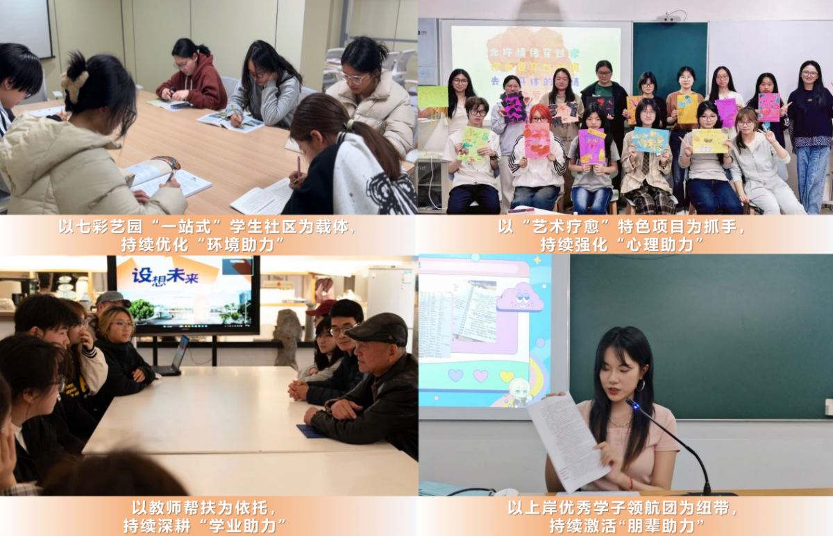 设计学院始终坚持以生为本,聚焦专升本学子备考全周期需求,构建起“环境助力、心理助力、学业助力、朋辈助力”四位一体的全链条护航体系。学院持续优化“环境助力”,以“七彩艺园”一站式学生社区为载体,打造专属备考空间;持续强化“心理助力”,以“艺术疗愈”特色项目为抓手,搭建全周期心理疏导专属通道;持续深耕“学业助力”,以专任教师为依托,开展学生学业规划指导与精准答疑辅导;持续激活“朋辈助力”,以上岸优秀学子领航团为纽带,搭建经验传承与陪伴帮扶平台,拓宽逐梦之路的成长路径。