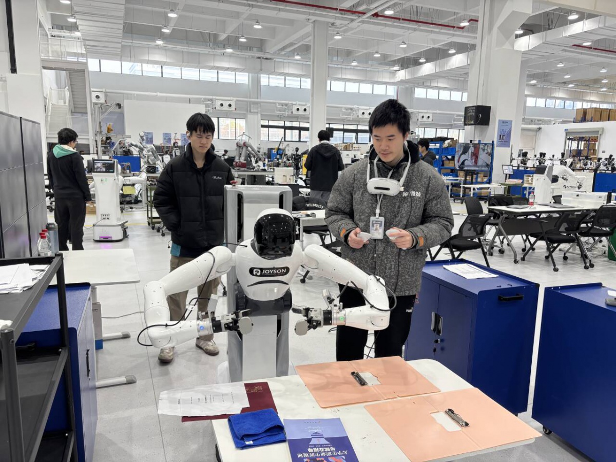 与此同时,学院与均普智能机器人有限公司共建的“订单班”也在同步推进。2025年下半年,校企双方联合开发工业具身智能数据采集工作流设计规范1套、遥操数采工作流215项、数采机器人操作手册2部,并将最新标准、技术和工艺实时融入专业课程,让教学内容与产业前沿同步更新。