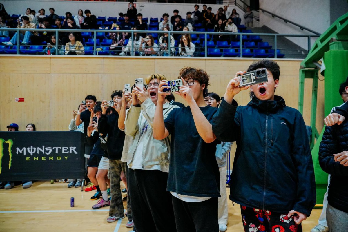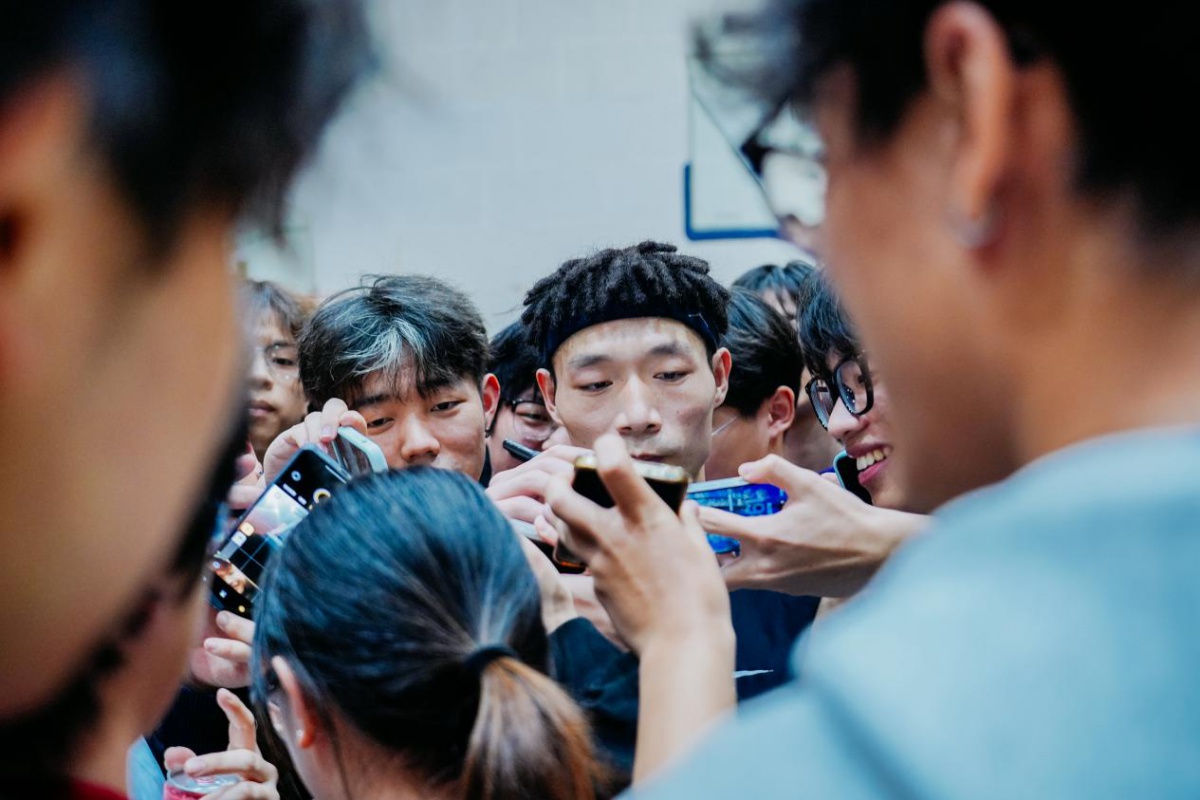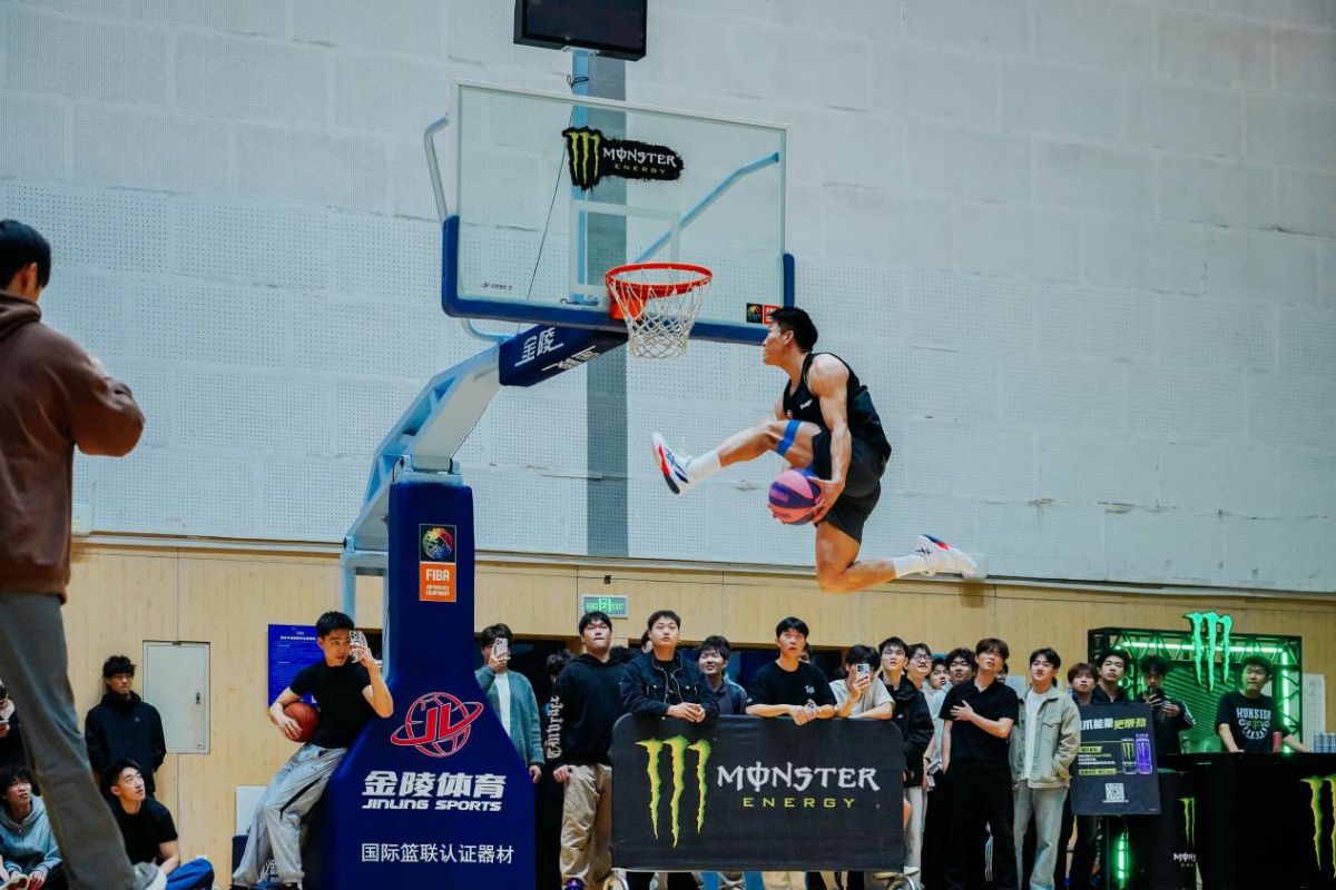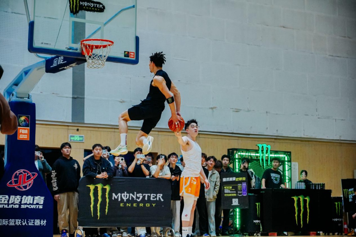 活动当晚,学校体育馆内人声鼎沸、欢呼声此起彼伏,气氛十分热烈。两大扣篮名将轮番登场,助跑、起跳、腾空、砸扣,一系列高难度创意扣篮、双人配合扣篮精彩上演,极致的弹跳力与炸裂的表现力,将篮球运动的力量与美感展现得淋漓尽致,每一个动作都引爆全场,让在场师生沉浸式感受职业篮球的震撼美学,纷纷举起手机记录热血瞬间。