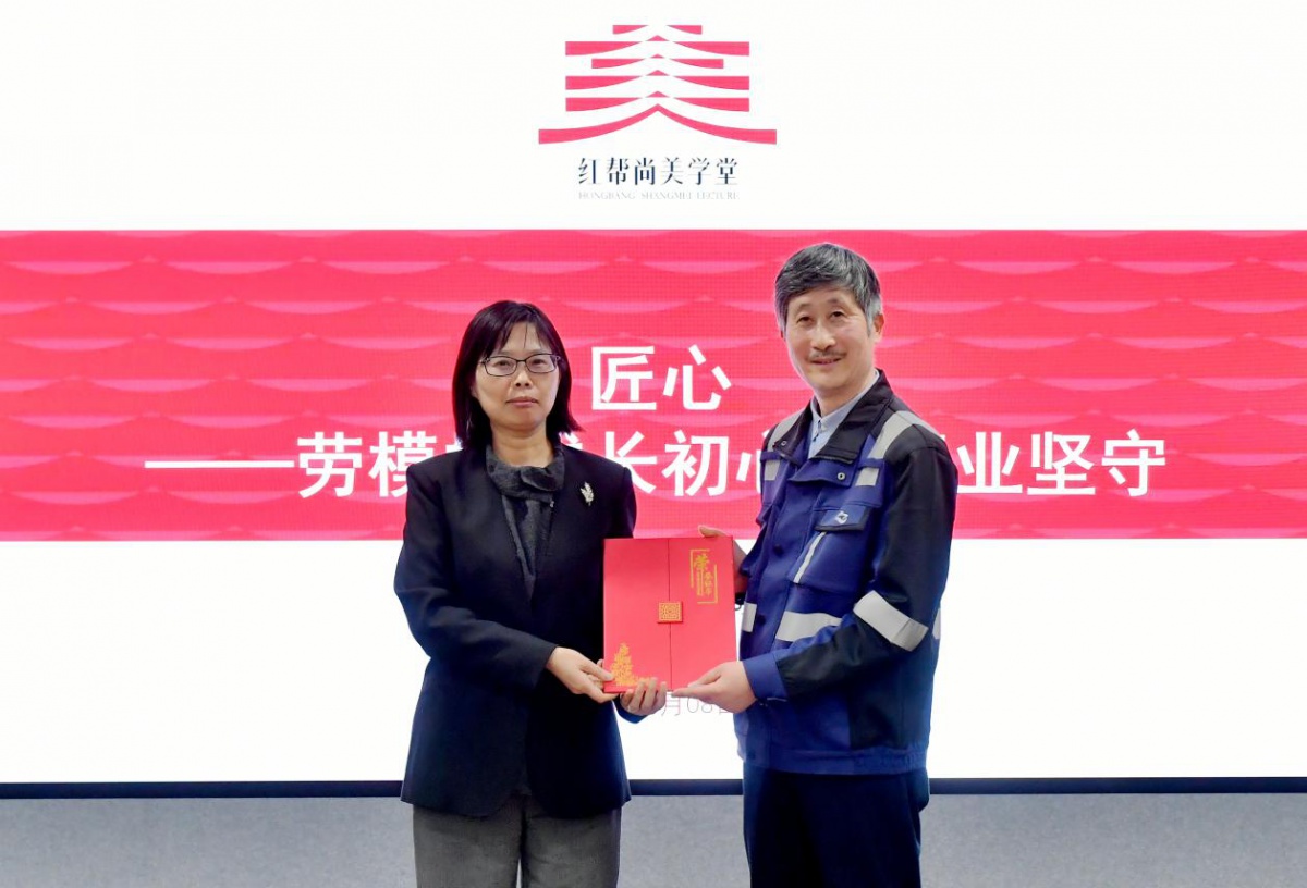 开讲前,林坚代表学校为虞成安颁发了“红帮文化导师”“匠心匠艺导师”聘书。一份聘书,连接起校园与一线、青年与榜样,也为浙纺服职院的思政教育与工匠精神培育再添重要力量。