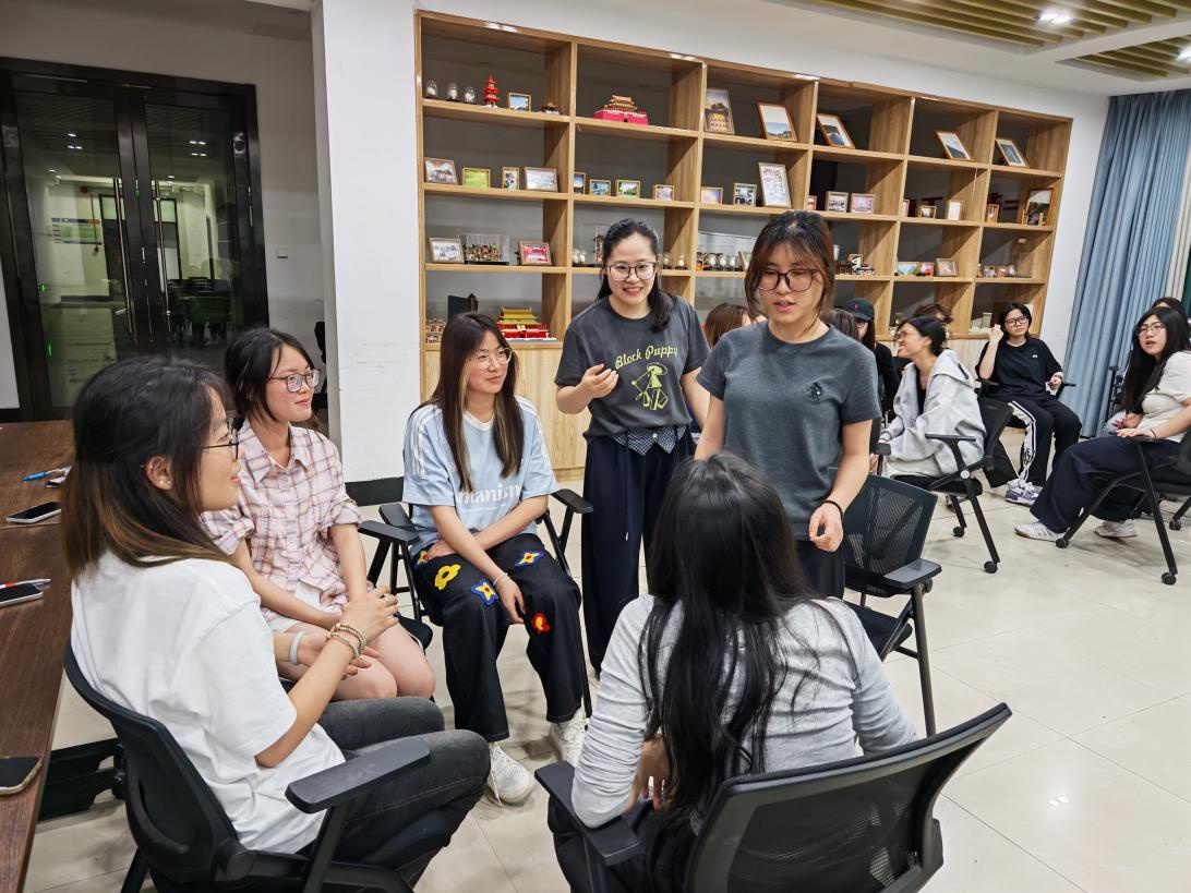 随后,“大风吹”破冰游戏拉开帷幕。同学们在轻松愉快的指令中快速换位、互动相识,原本因实习与备考带来的紧绷与疲惫在笑声中悄然消散。随机分组后的协作互动,进一步拉近了彼此距离,为后续深度交流营造了安全、信任的氛围。