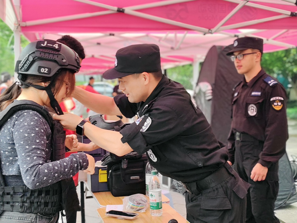 消防安全实操区里,大家排着队亲手操作灭火器,在专业老师的指导下,学习火场逃生技巧,直观掌握应急处置技能;安全器械展示区,防暴盾牌、钢叉、警棍等装备一一亮相,特警队员现场演示使用方法,还邀请同学们上手体验,沉浸式感受安全守护的“硬核力量”。在安全游戏互动区,同学们通过趣味答题、情景闯关、知识竞猜等形式,在轻松欢乐的氛围中巩固安全常识。